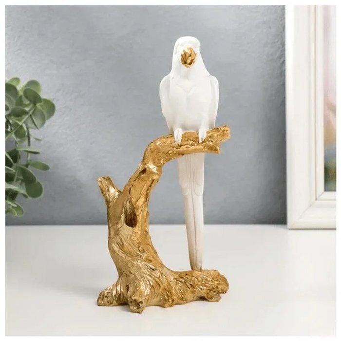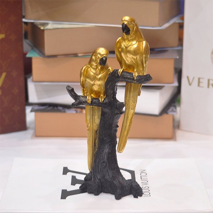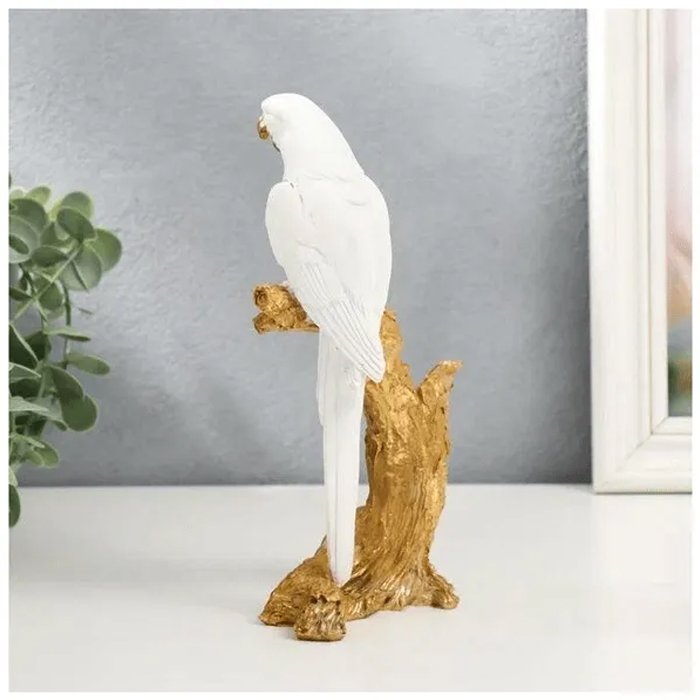 - Transform your living space with the exquisite charm of our Gold and White Parrots on Marble Table decor piece. These stunning parrots, adorned in a luxurious gold and white finish, bring a touch of elegance and vibrancy to any room. Crafted with meticulous attention to detail, each parrot showcases intricate feather patterns and lifelike expressions, making them a captivating focal point.