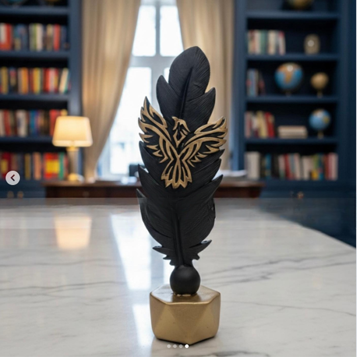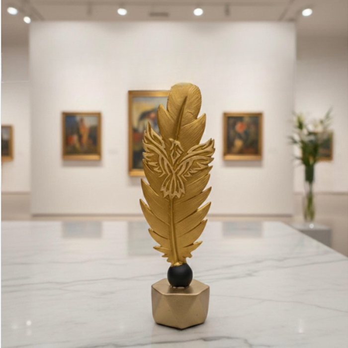 - Each statue is meticulously crafted, showcasing intricate feather details that capture the light beautifully, creating a striking visual impact. The rich gold finish contrasts elegantly with the deep black accents, making these pieces not just decorations, but conversation starters.