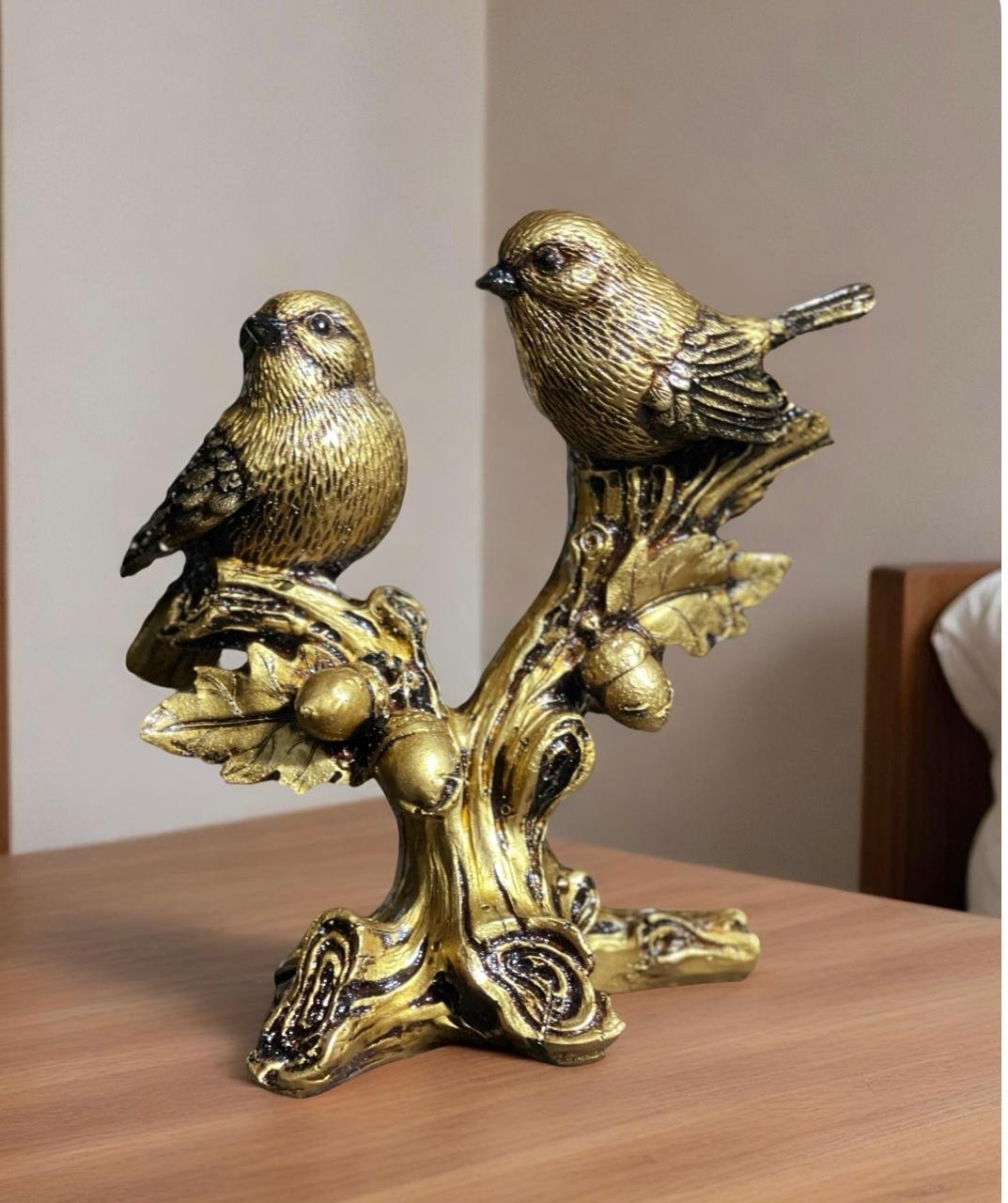 - Transform your bedside table into a serene sanctuary with our exquisite Two Birds on a Branch figurine. Crafted with meticulous attention to detail, this charming piece captures the essence of nature, featuring two delicate birds perched gracefully on a beautifully sculpted branch. The soft, muted colors and intricate textures bring a touch of tranquility to your space, making it the perfect accent for any bedroom decor.