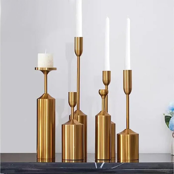 • Transform your living space into a sanctuary of warmth and elegance with our exquisite gold candle holders. Crafted from high-quality metal, these stunning pieces feature a lustrous finish that catches the light beautifully, creating a mesmerizing glow in any room.