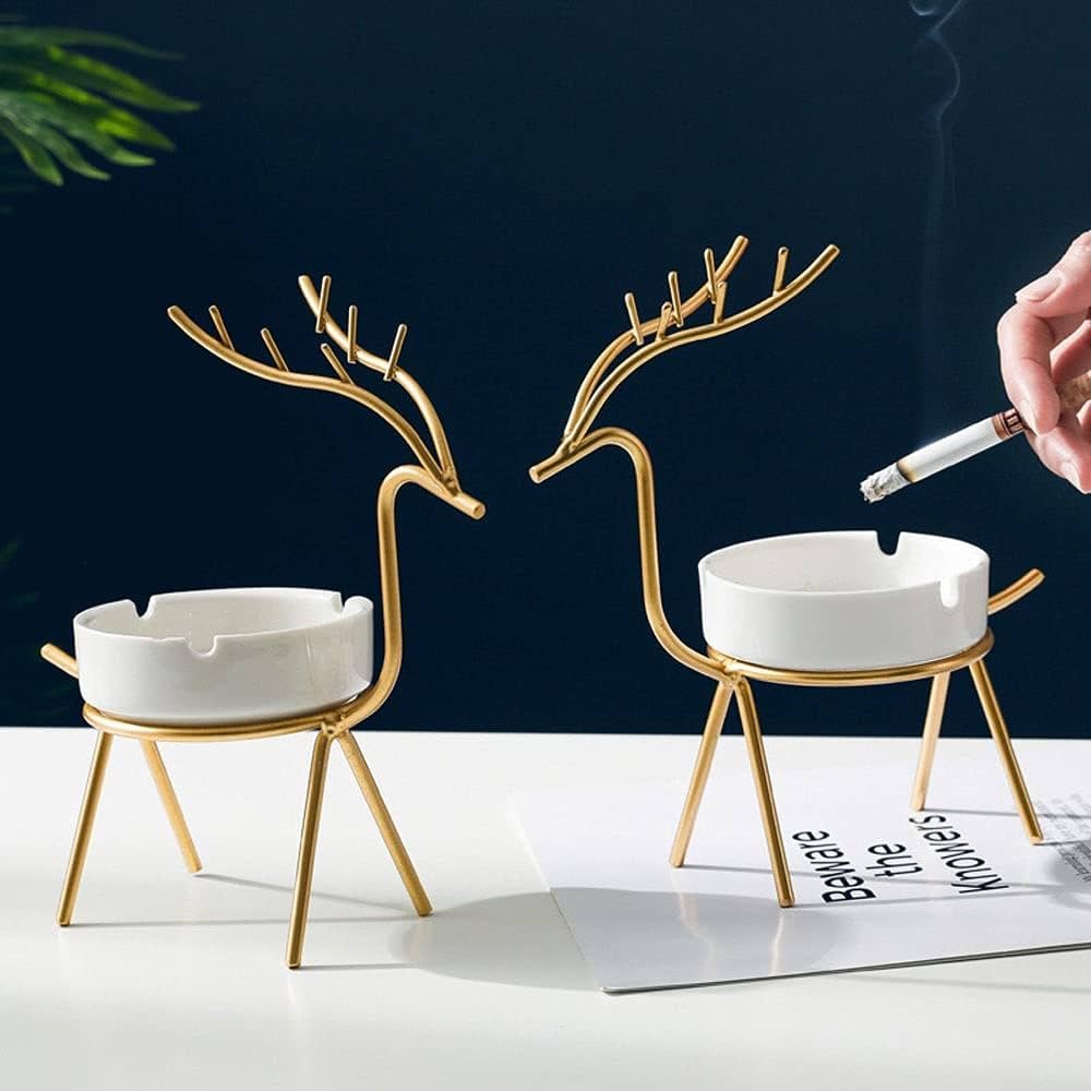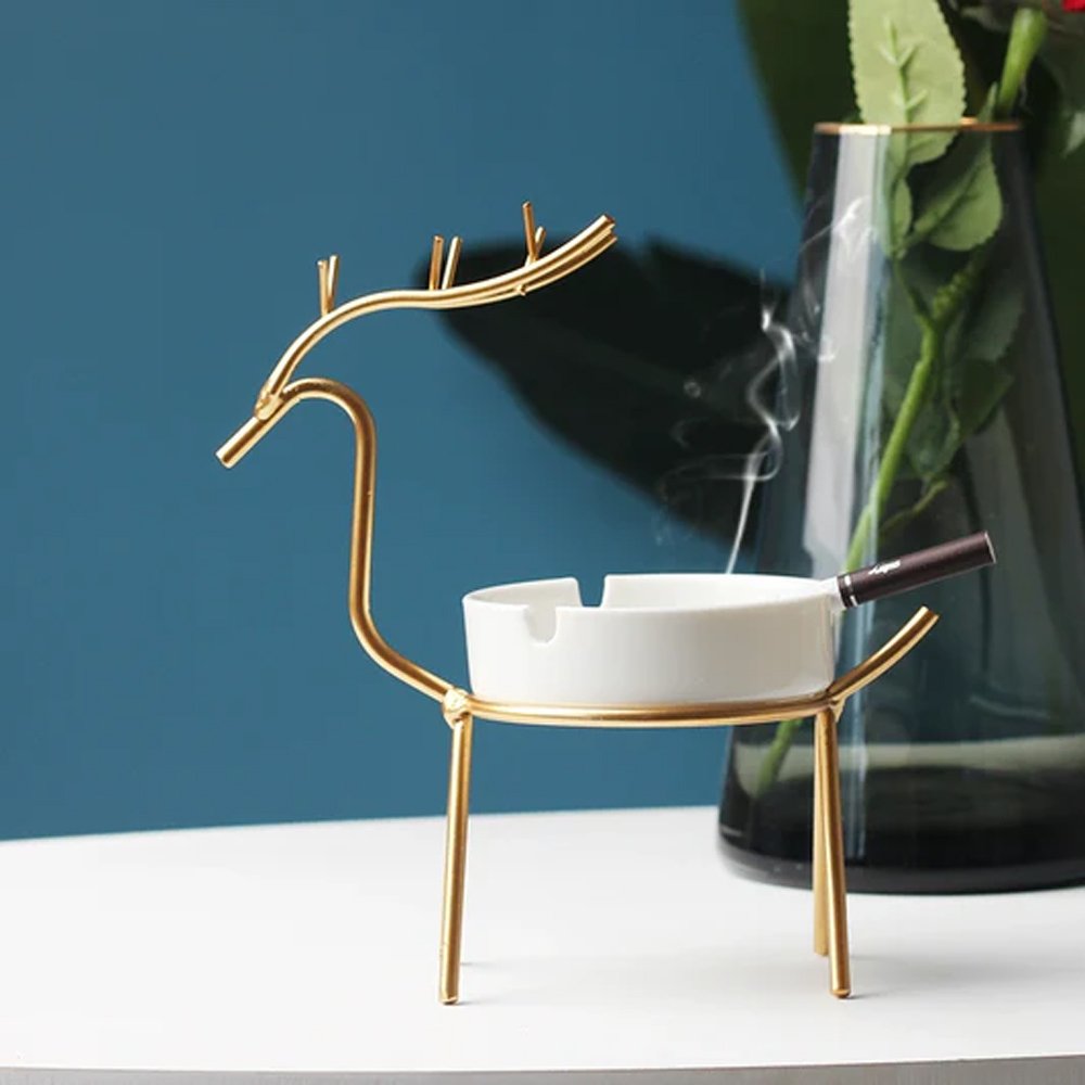Home Home Decor Deer Style Gold Metal Ashtray For Home & Office