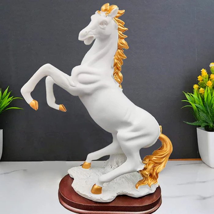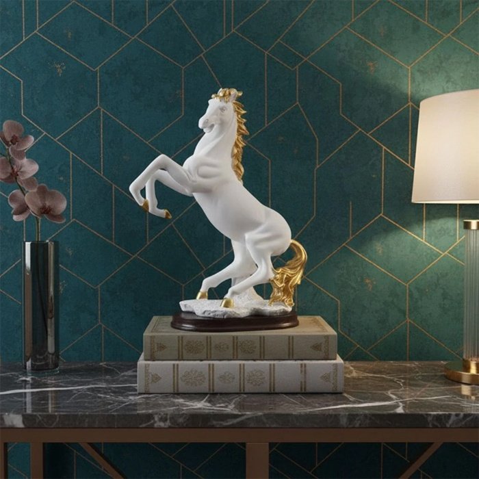 - Not only does this white horse statue serve as a striking decorative element, but it also embodies themes of freedom, strength, and nobility. Pair it with a stylish lamp to create a warm and inviting atmosphere in your living space. Ideal for horse lovers or anyone looking to add a unique touch to their home, this statue is a versatile piece that complements both modern and traditional decoration styles.