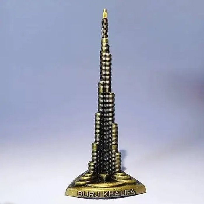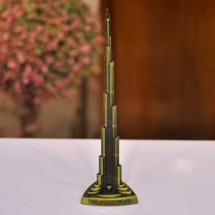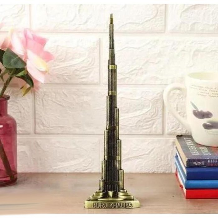 - Elevate your home or office decor with this exquisite small statue of the Burj Khalifa, the tallest building in the world and a symbol of architectural brilliance. Crafted with meticulous attention to detail, this stunning replica captures the iconic silhouette of the Burj Khalifa, showcasing its sleek lines and impressive height.