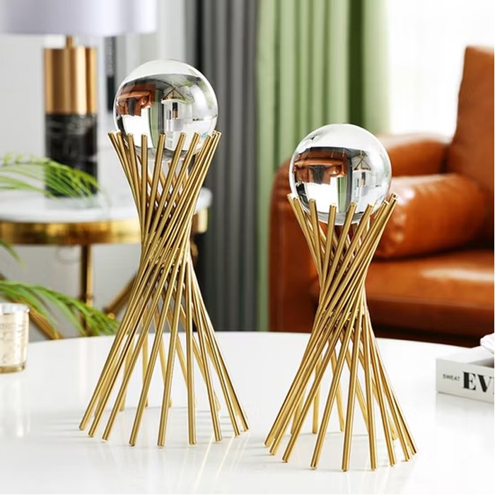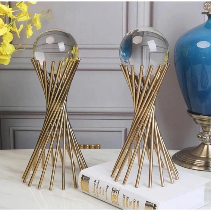 Pack Of 2 Metal Golden Crystal Decoration Pieces