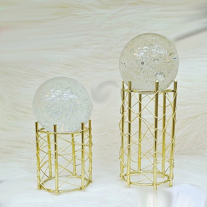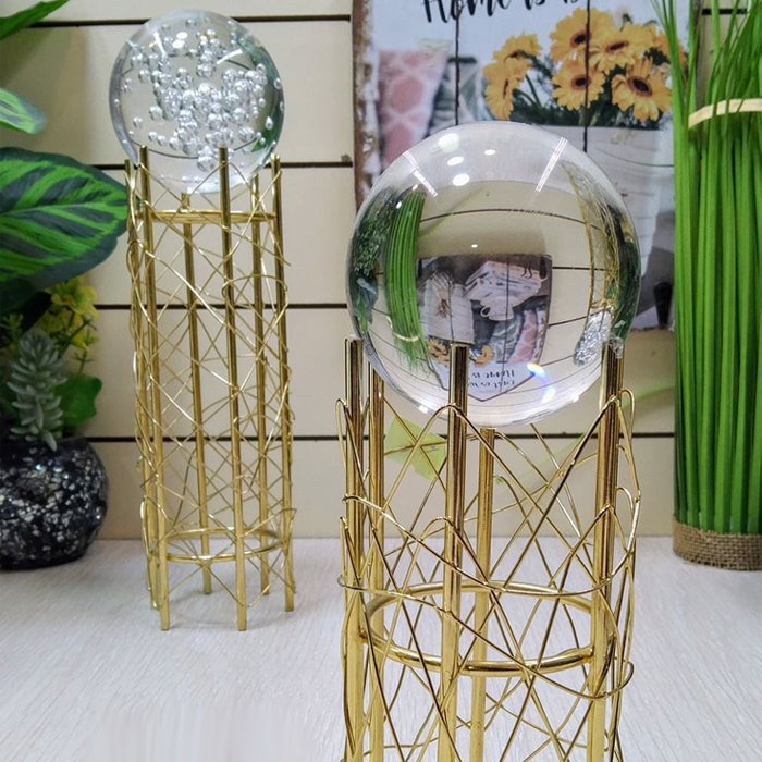 - Designed with both aesthetics and functionality in mind, this golden metal stand is sturdy yet lightweight, allowing for easy repositioning to suit your decor needs. The glass ball on top is not just a decorative element; it serves as a symbol of clarity and balance, making it an ideal gift for housewarmings, weddings, or any special occasion.
