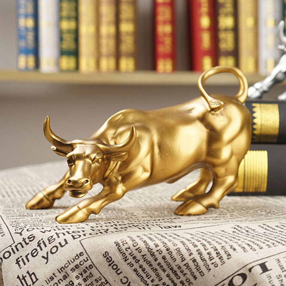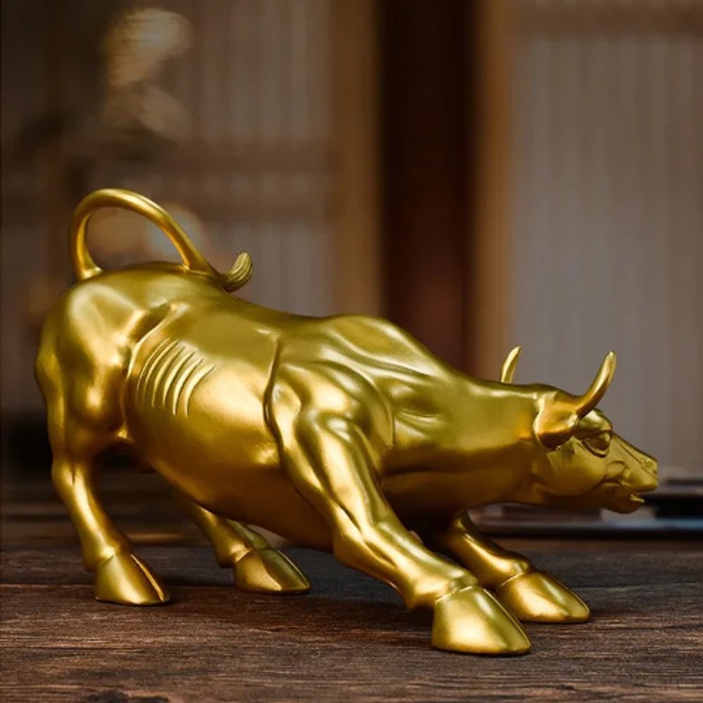 Resin Bull Figure Statue For Home Office Decor (Golden)